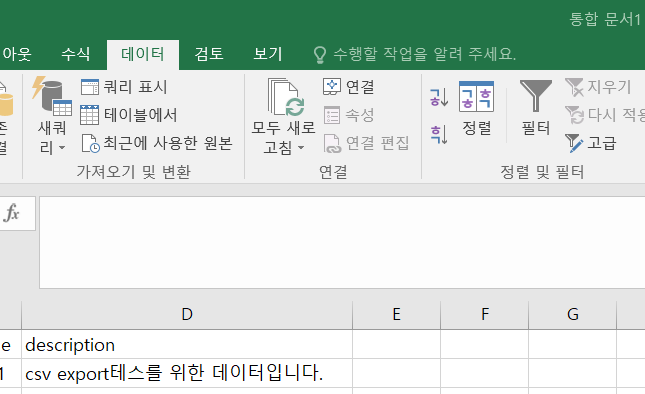 2. MS Excel 프로그램에서 csv 데이터를 UTF-8 인코딩으로 인식해서 가져오기